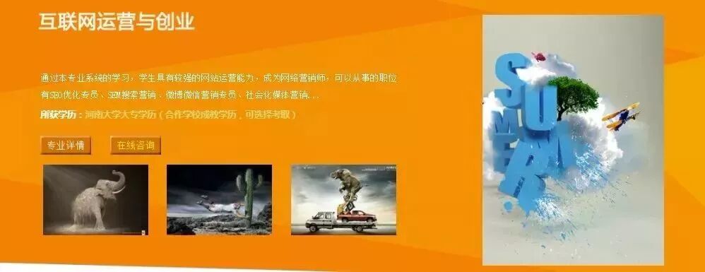 学校紧跟市场发展,开设了室内设计、互联网运营与创业、UI设计、影视动漫中后期、软装设计等热门专业,只为学生更好的选择,更好的就业。